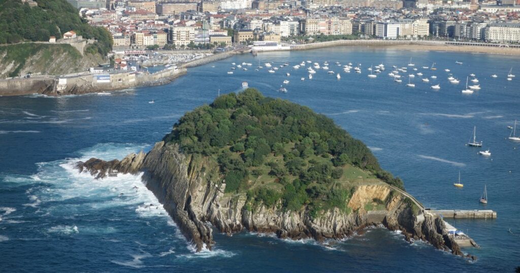 Bem no meio da Bahía de la Concha, a Isla de Santa Clara é um pequeno paraíso que mistura natureza, história e vistas incríveis de San Sebastián. A ilha tem uma pequena praia que só aparece na maré baixa, trilhas cercadas de vegetação, alguns mirantes e até um farol charmoso no topo. Por isso, no verão, este é um dos passeios mais legais para quem quer explorar um cantinho diferente da cidade.