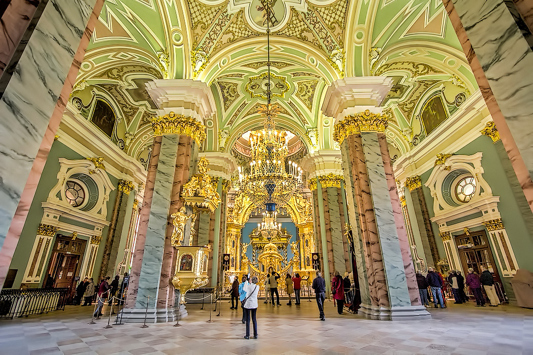 - A Catedral de Pedro e Paulo, que fica dentro da fortaleza, começou a ser construída em 1712 e serve como necrópole dos czares russos, desde Pedro, o Grande, até Nicolau II e sua família.