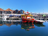 Passeie pelo V&A Waterfront: porto revitalizado cheio de lojas, restaurantes, bares, e com acesso a passeios de barco, inclusive para a ilha histórica da cidade.