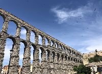 O impressionante Aqueduto Romano de Segóvia foi construído sem o uso de argamassa, sendo composto por mais de 160 arcos e se estendendo por cerca de 818 metros. É um dos aquedutos romanos mais bem preservados do mundo.