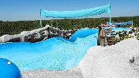 Pegue a sua boia e desça 200 metros em alta velocidade por um dos 3 diferentes tobogãs que aproveitam a água de degelo do Mount Gushmore.