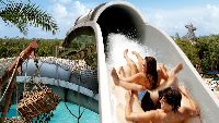 Aqui você vai encontrar um recanto de diversão após um tufão ter devastado a região e jogado barcos pra todos os lados como se fossem de brinquedo, inclusive láaaaa no alto do Monte Mayday… Calma, gente! Esse é apenas o tema do parque, tá? Nada disso aconteceu de verdade, podem ficar tranquilos! Você vai se divertir em piscinas com ondas enormes, escorregas emocionantes, passeios relaxantes de bóia pelo rio, e vai até poder mergulhar com tubarões e raias nos arredores de um submarino que afundou!