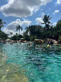 Experiência sensacional. Sugiro nadar com os golfinhos. A comida é de boa qualidade e o atendimento é bom.tem piscina morna com correnteza pra vc relaxar e andar pelo parque, piscina gelada com os peixes, um viveiro de pássaros muito bacana também. Vale muito a pena!