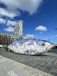 O Big Fish, oficialmente chamado de Salmon of Knowledge, é uma escultura enorme em forma de salmão (com 10 metros de comprimento) que fica às margens do rio Lagan. Ele é revestido por azulejos de cerâmica azul e branca, cada um ilustrando trechos da história, cultura e vida cotidiana de Belfast. É impossível passar por ali e não parar para fotografar ou, como muita gente faz, dar aquele toque no peixe para dar sorte.