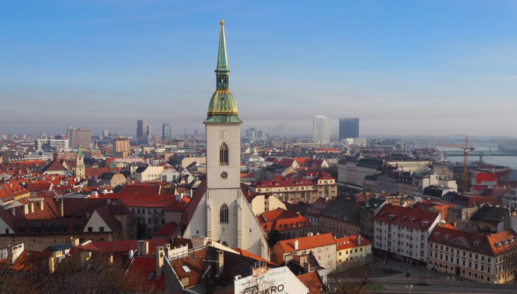 A Catedral de São Martinho é a maior igreja gótica de Bratislava, conhecida pela sua torre imponente e detalhes arquitetônicos deslumbrantes, tanto internos quanto externos.