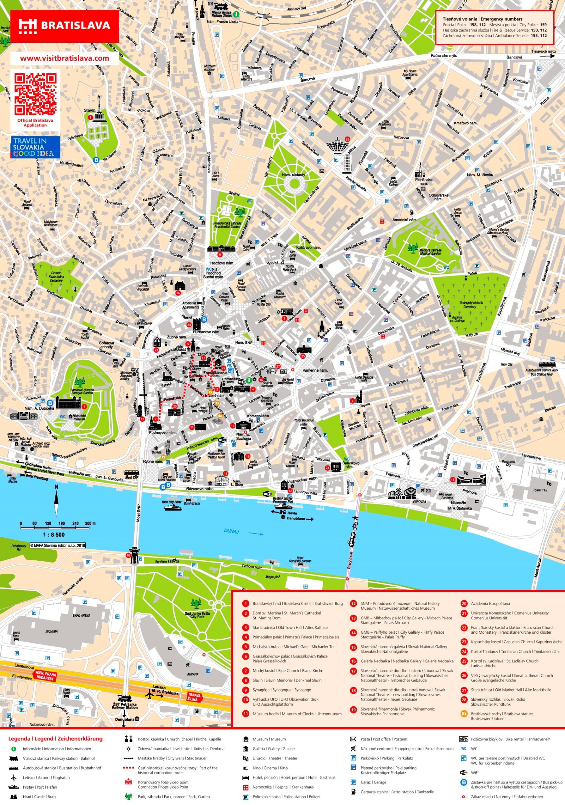 Este mapa simples oferece uma boa visão de onde estão as principais atrações de Bratislava, ajudando turistas a planejar seu passeio pela cidade.