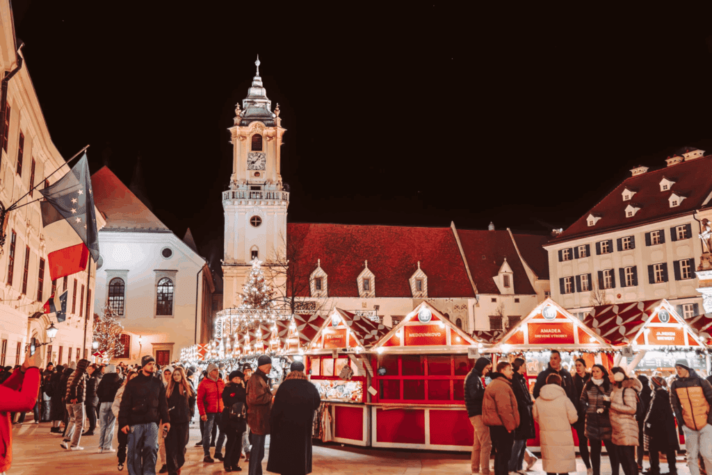 O Mercado de Natal em Bratislava transforma a cidade em um conto de fadas, com barracas decoradas, vinho quente e tradicionais produtos natalinos, atraindo tanto moradores quanto turistas.