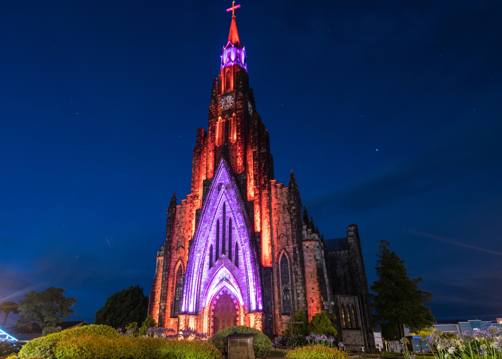 A Catedral de Pedra é um dos pontos turísticos mais icônicos de Canela. Com sua bela fachada em pedra basalto e torre de 65 metros, é um lugar mágico que encanta os visitantes tanto durante o dia quanto à noite.