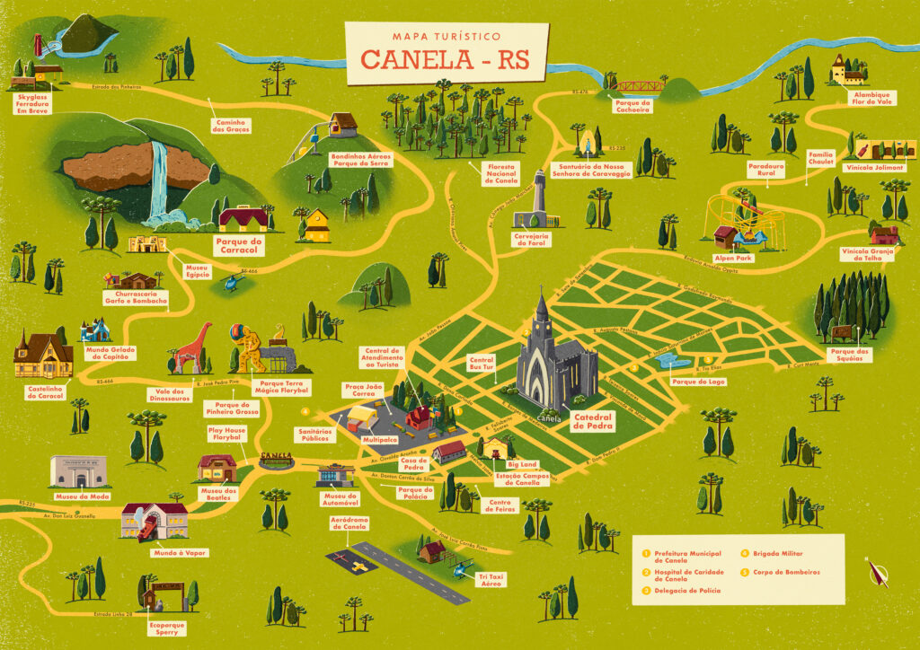 Um mapa simples, mas eficaz, que mostra as principais atrações de Canela. Ele é útil para quem deseja explorar a cidade com mais eficiência e conhecer todos os pontos turísticos.