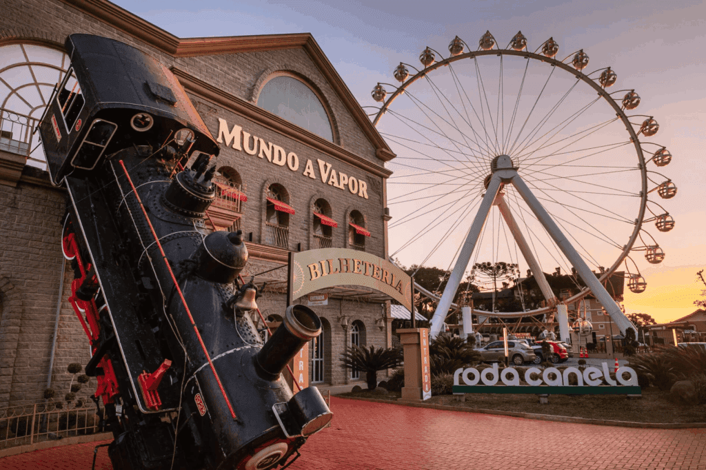 Este parque temático se destaca por suas réplicas de máquinas a vapor e a imponente Roda Canela, que oferece vistas panorâmicas da Serra Gaúcha, garantindo um dia de diversão para toda a família.