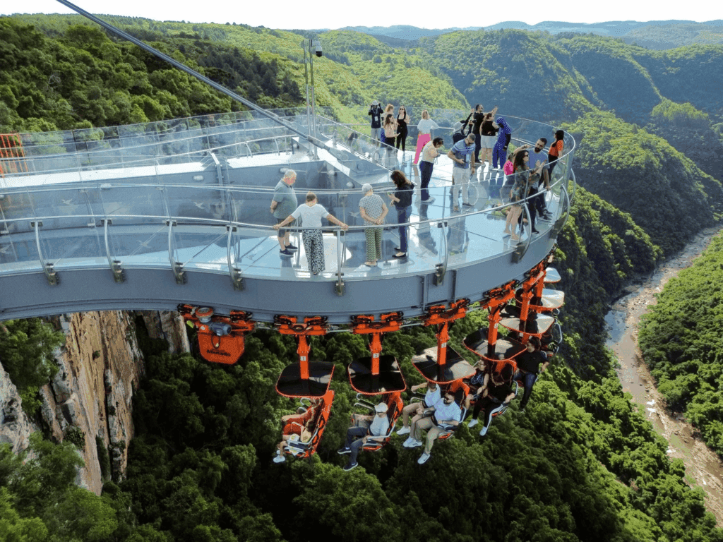 O Skyglass é uma plataforma de vidro que proporciona uma vista incrível de 360 graus do Vale da Ferradura. É a primeira estrutura desse tipo na América Latina, perfeita para quem busca emoção e vistas deslumbrantes.