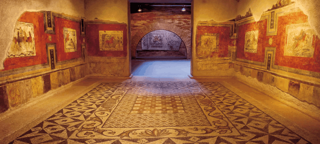 Localizado sobre um sítio arqueológico, o museu exibe artefatos romanos e é uma atração por si só, com sua arquitetura que remete ao passado.