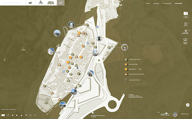 Um mapa simples mostra onde estão as principais atrações em Monsaraz, facilitando a exploração deste destino histórico. Montanhas, lagos e vilas de pedra estão entre os encantos do local.