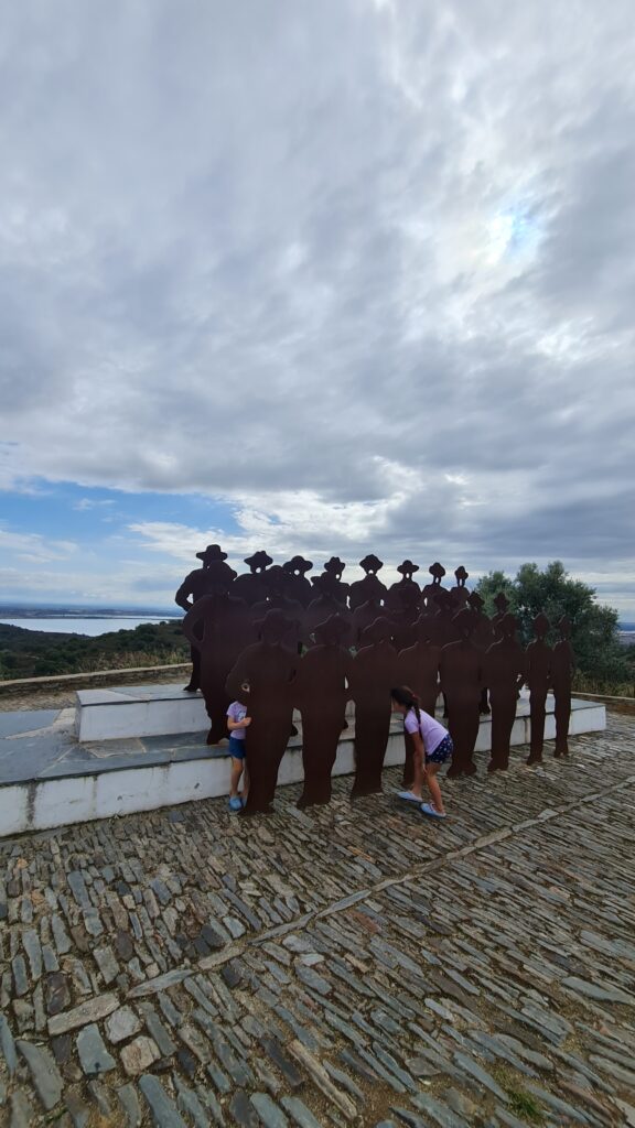 Esta escultura homenageia o Cante Alentejano, uma das expressões culturais mais icônicas de Portugal, reconhecida pela UNESCO. Apresenta um grupo de cantores em bronze na entrada de Monsaraz.