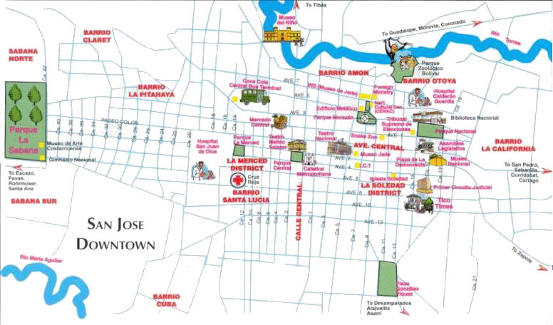 Um simples mapa pode ajudar a localizar as principais atrações de San José, facilitando a exploração da cidade e suas belezas culturais.