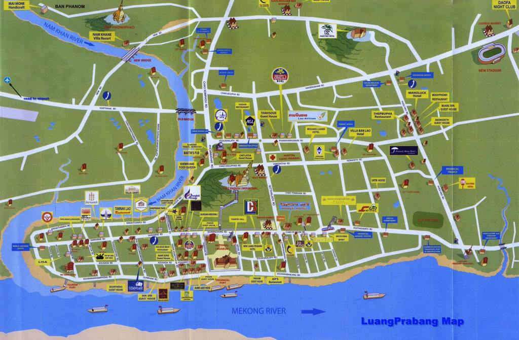Antes de visitar, consulte o mapa das principais atrações de Luang Prabang. Ele proporciona uma visão clara das belezas e a localização dos pontos turísticos na cidade.