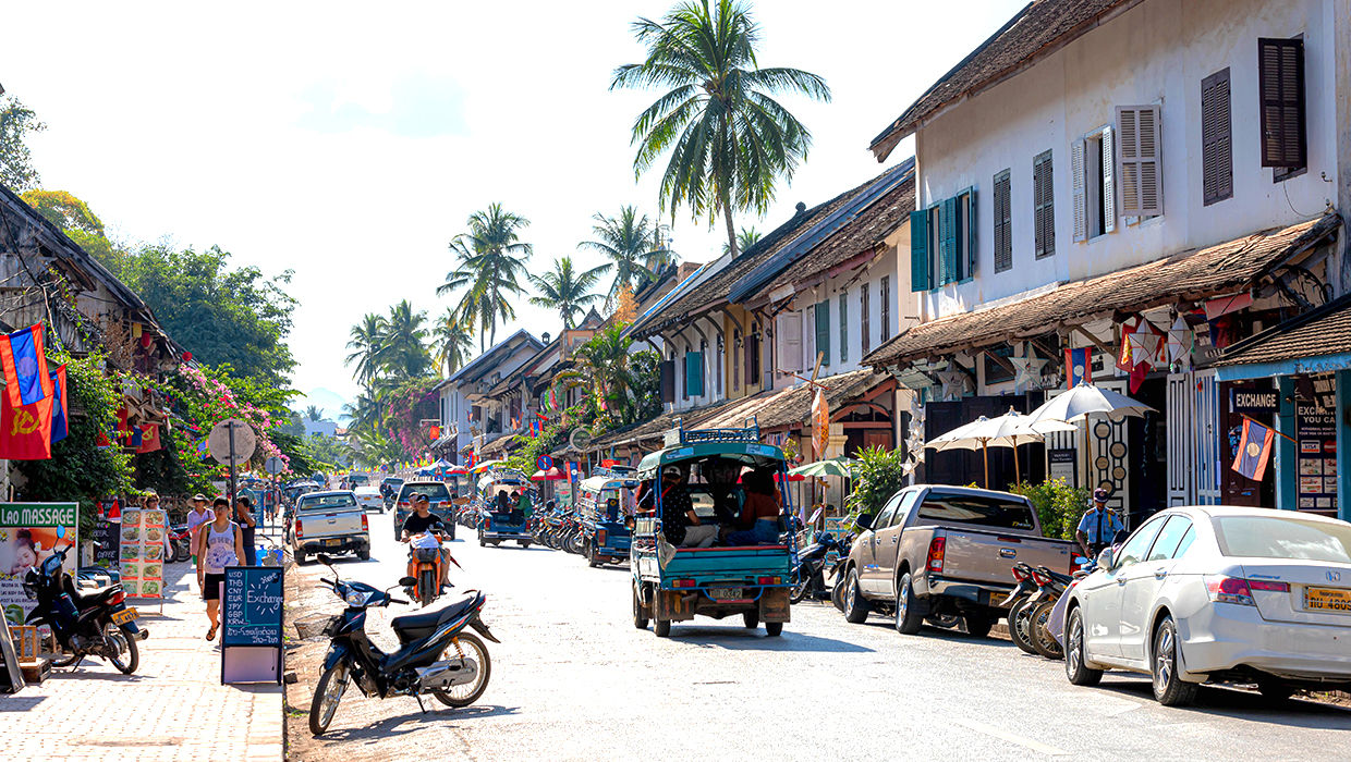 Sisavangvong Road é a principal rua de Luang Prabang, repleta de lojas, cafés e o famoso Night Market. Perfeita para vivenciar o cotidiano da cidade.