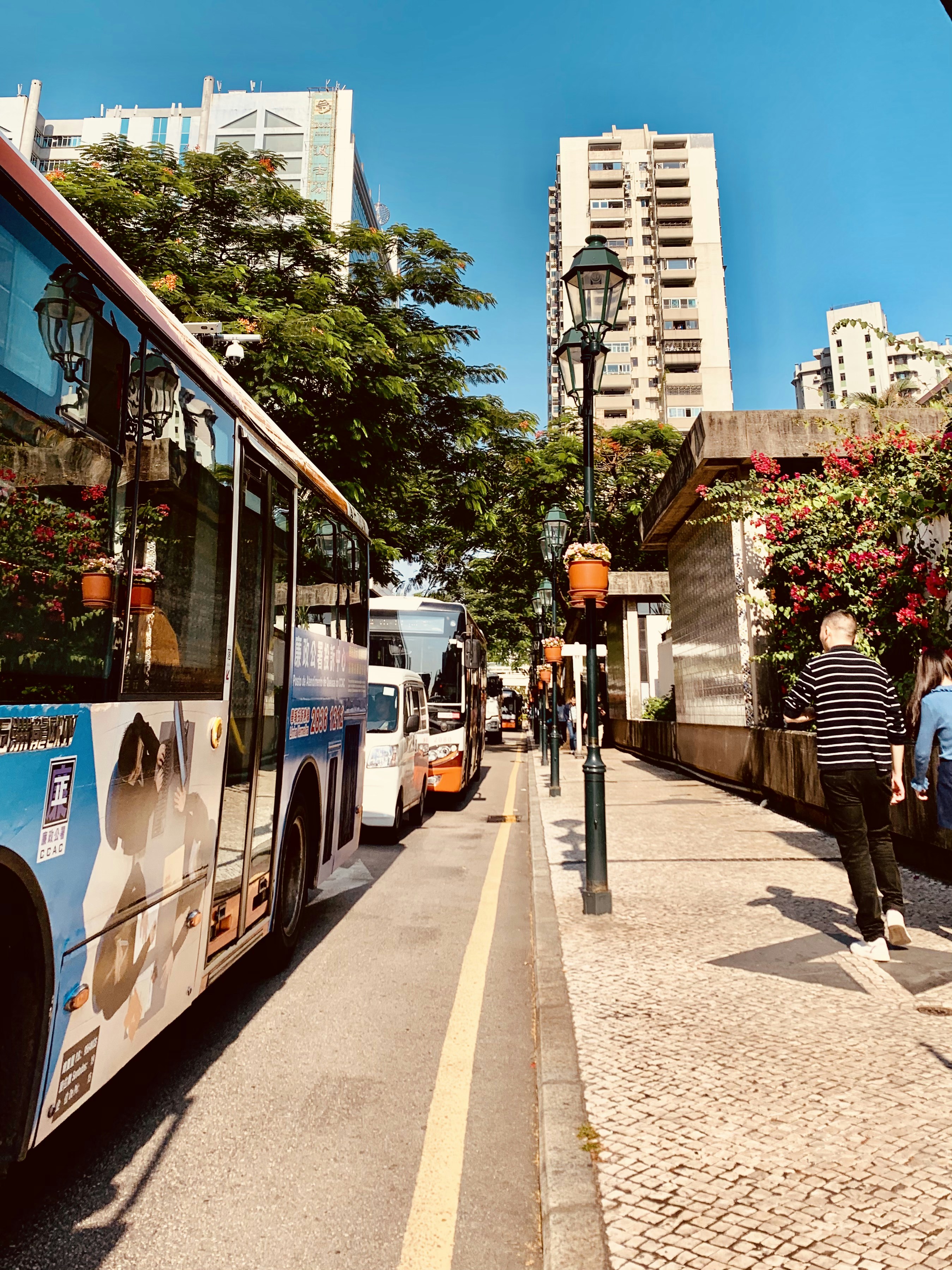 O português é o idioma oficial, mas é mais comum em documentos do que no cotidiano. Embora haja uma herança portuguesa, na prática, as línguas predominantes nas ruas são o cantonês e o mandarim.
