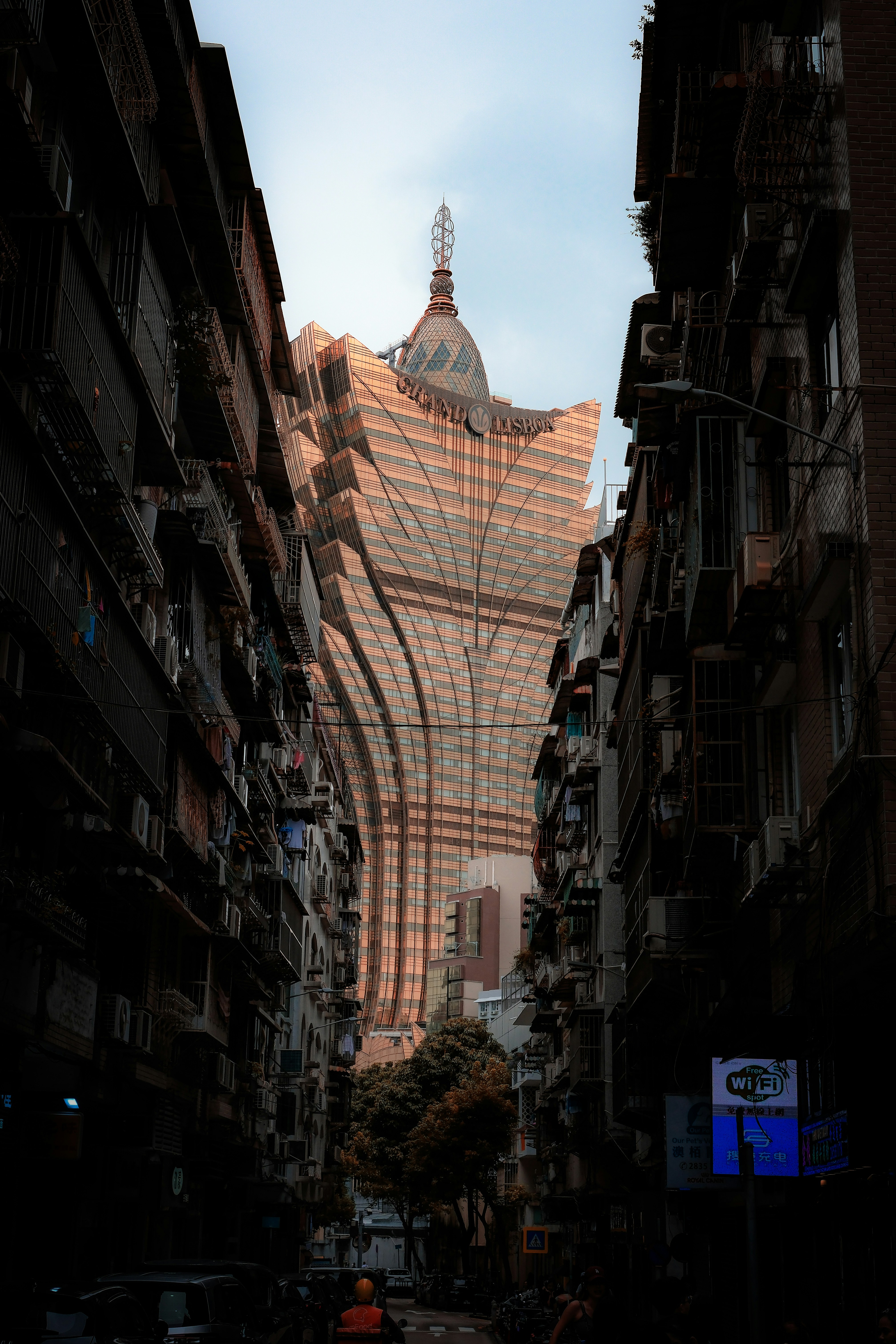 A arquitetura apresenta uma rica combinação de casarões coloridos, azulejos portugueses e fachadas neoclássicas, coexistindo harmoniosamente com templos taoístas e pagodes.